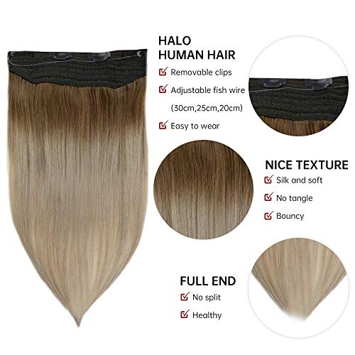 Full Shine Halo Extensions 14 Inch Brazilian Hair Balayage Color 10 Fading To 14 Dark Blonde 70g Per Pack Fish Wire Hair Extensions Real Remy Human Hair Full Head For Women In